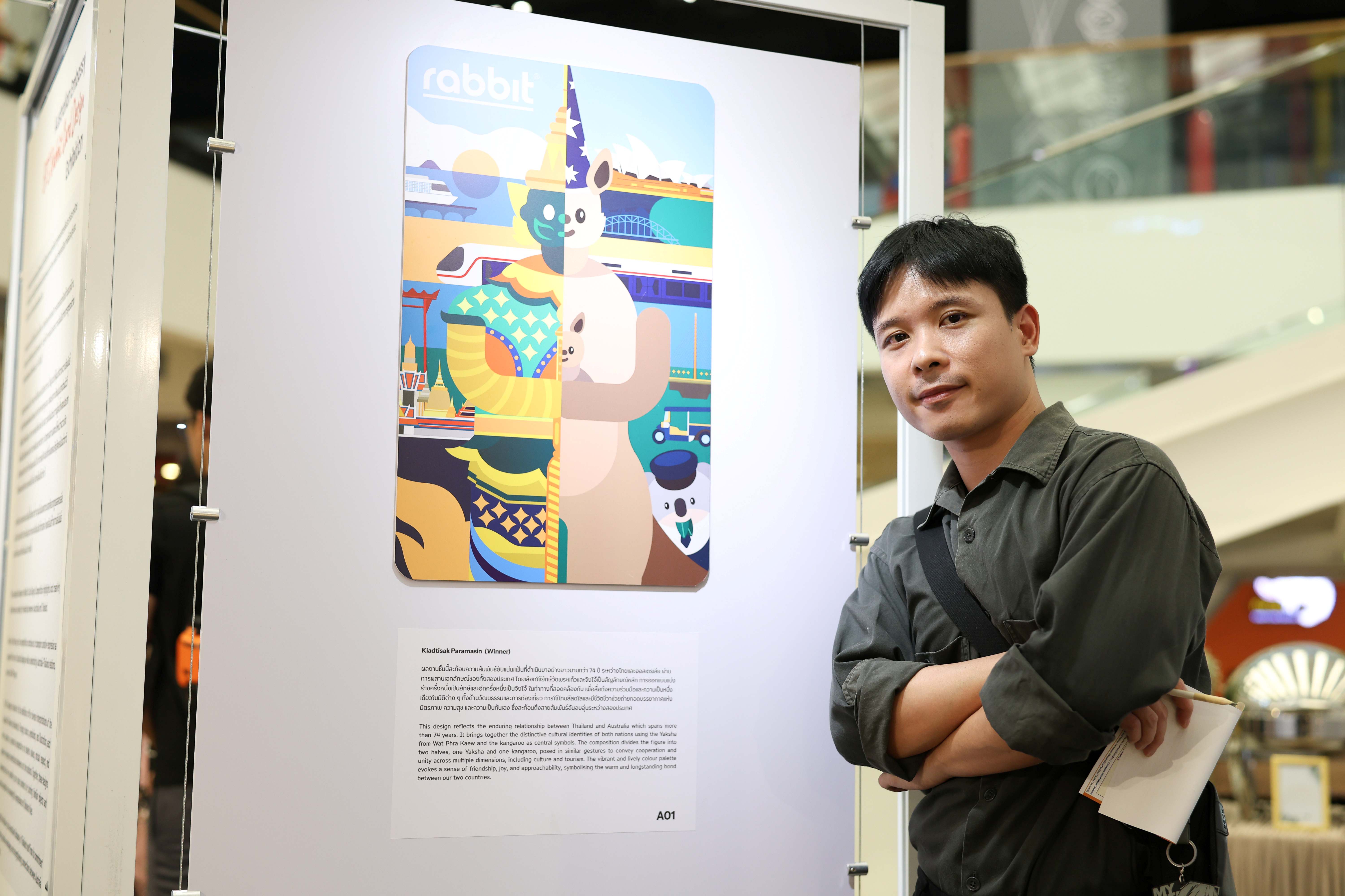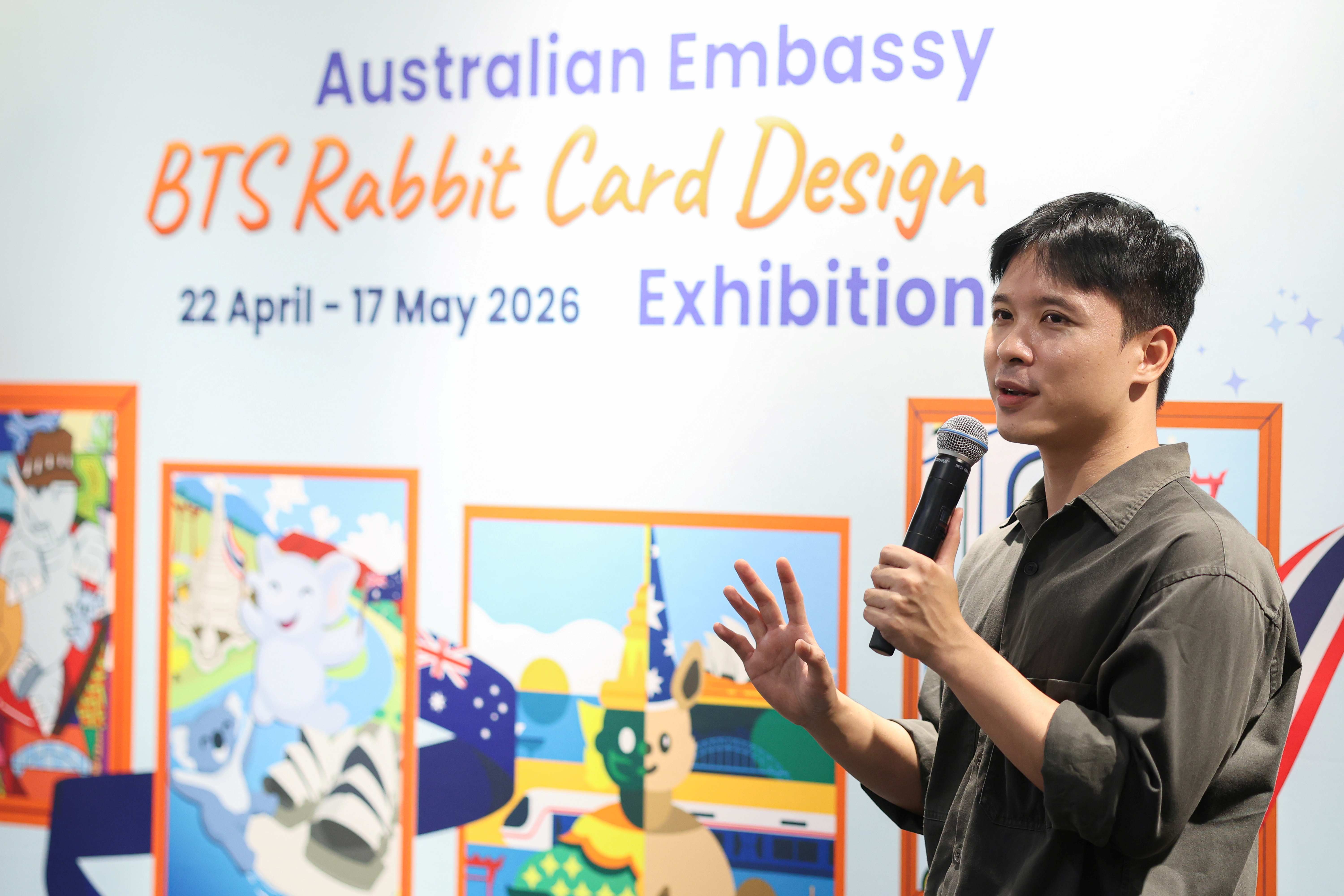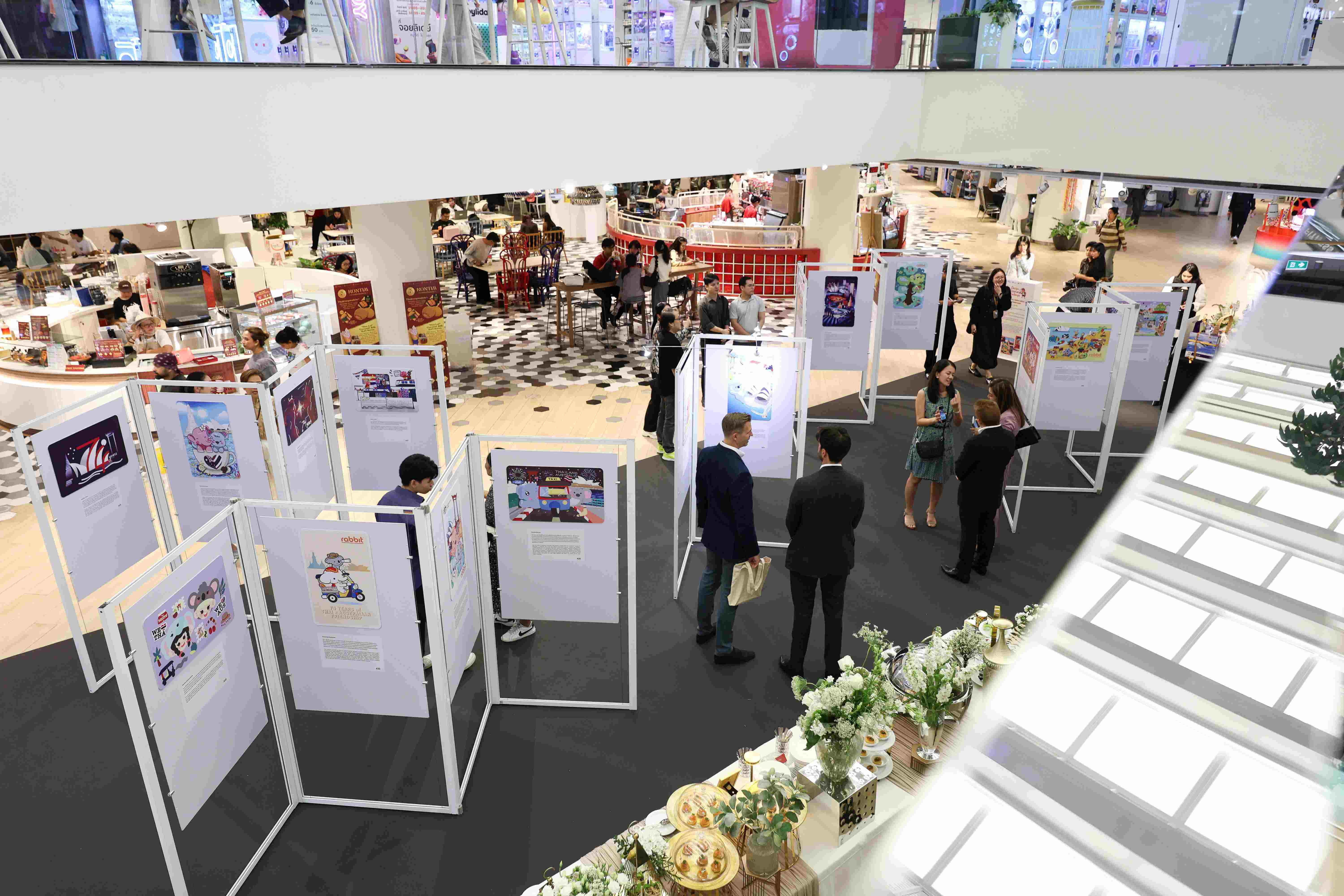 The exhibition features 35 standout designs from the Embassy’s third BTS Rabbit Card Design Competition, including the winning design, which was made into a limited-edition card. The artworks on display were selected for their creativity and originality and offer diverse interpretations of the Australia-Thailand relationship.