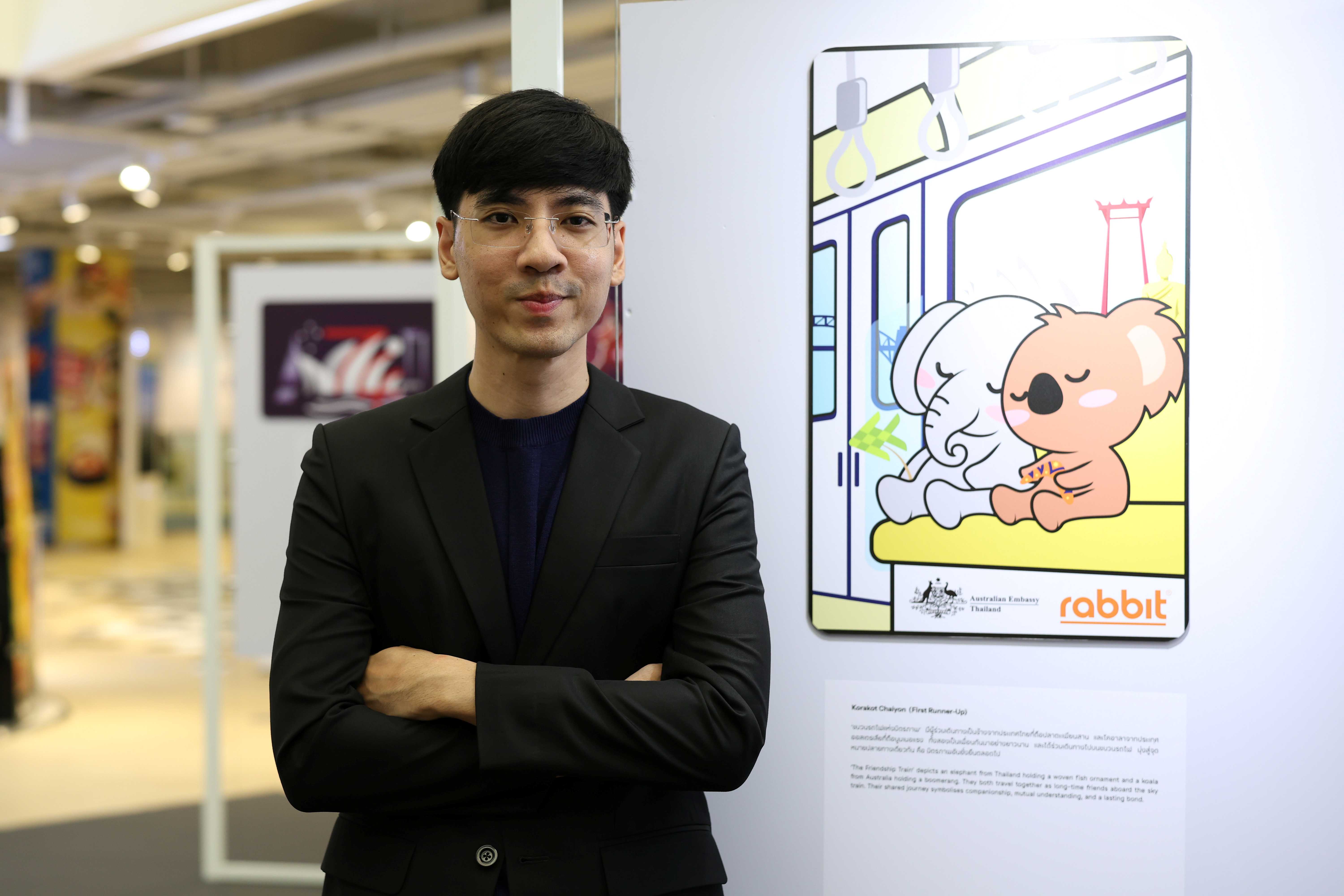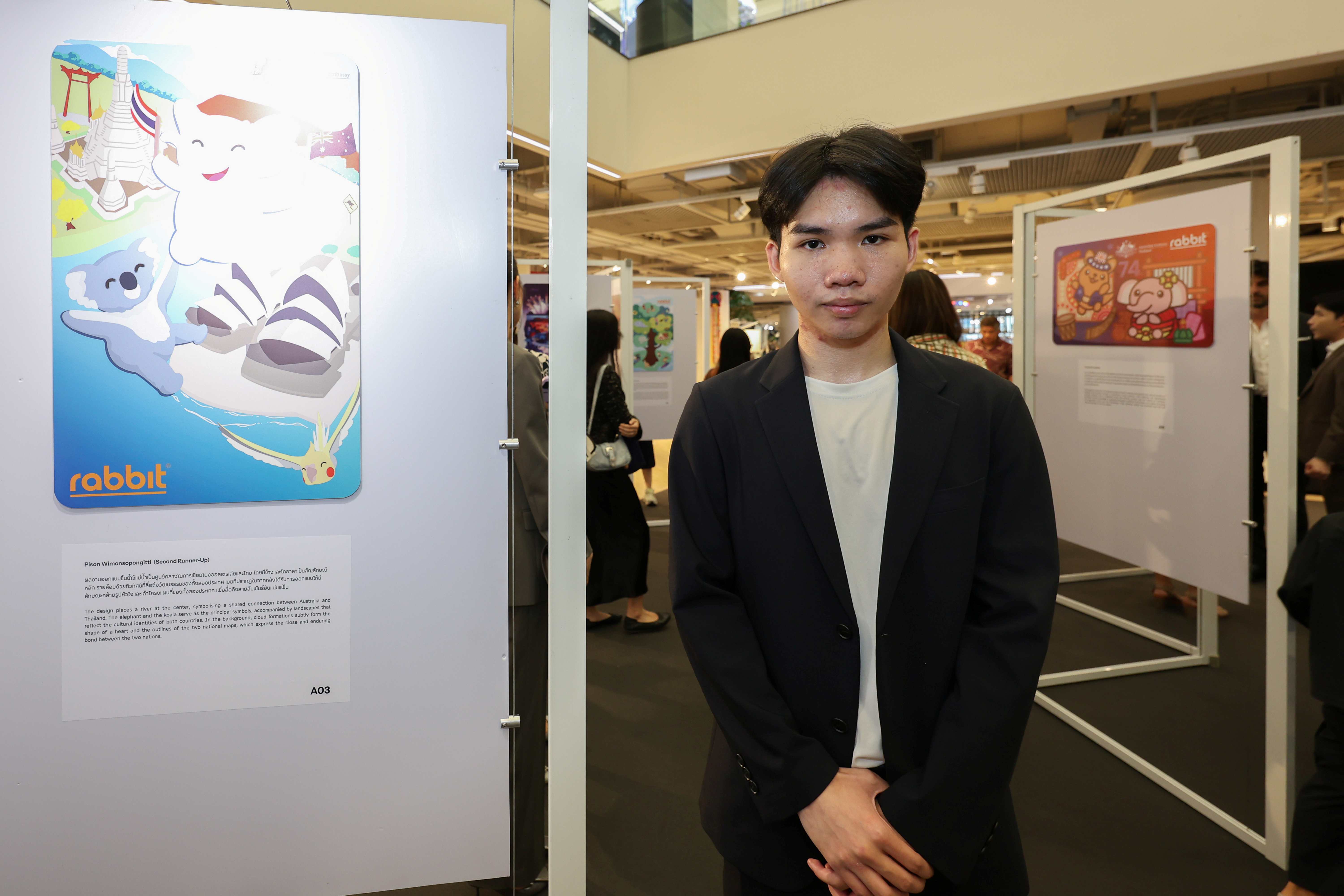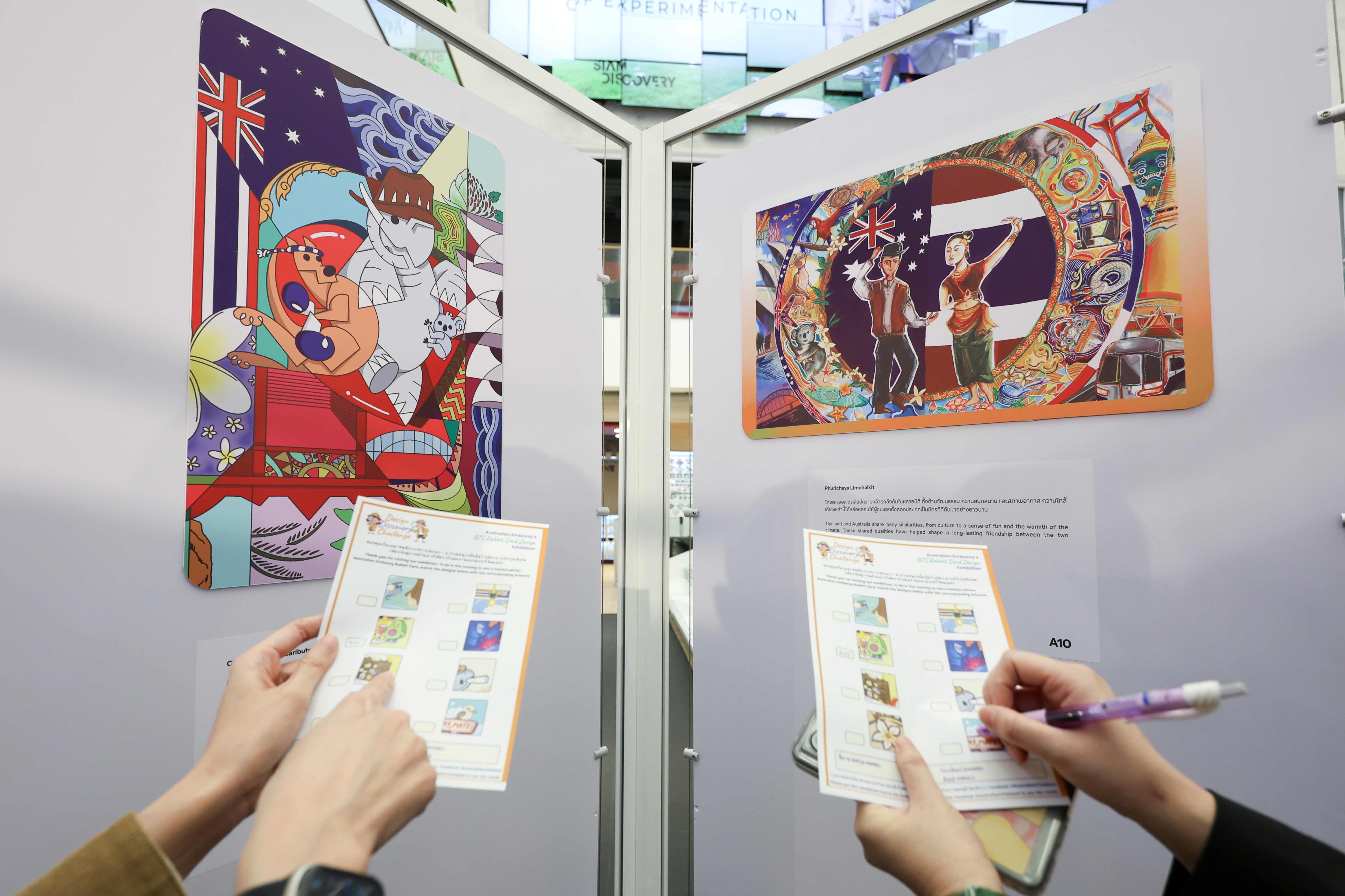 The exhibition features 35 standout designs from the Embassy’s third BTS Rabbit Card Design Competition, including the winning design, which was made into a limited-edition card. The artworks on display were selected for their creativity and originality and offer diverse interpretations of the Australia-Thailand relationship.